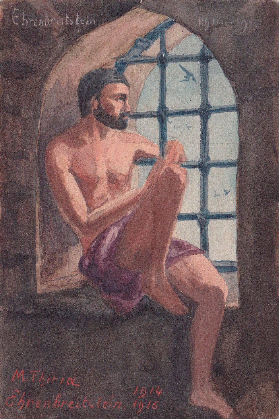 Cela commencerait une nuit parisienne en pleine crise infectieuse. Un médecin urgentiste me dit au moment de rédiger l’ordonnance à mon nom qu’il connaît mon ancêtre pour faire une thèse sur l’art nouveau et la ferronnerie d’art. Michel Thiria était maître verrier et il connaît son œuvre. Nous restons en contact par mail et il me fournit un certain nombre de documents. Je découvre l’artiste autant que l’homme engagé politiquement pour une Lorraine libre, sa résistance dans des journaux, son enfermement dès 1914 dans la forteresse d’Ehrenbreitstein à Coblence